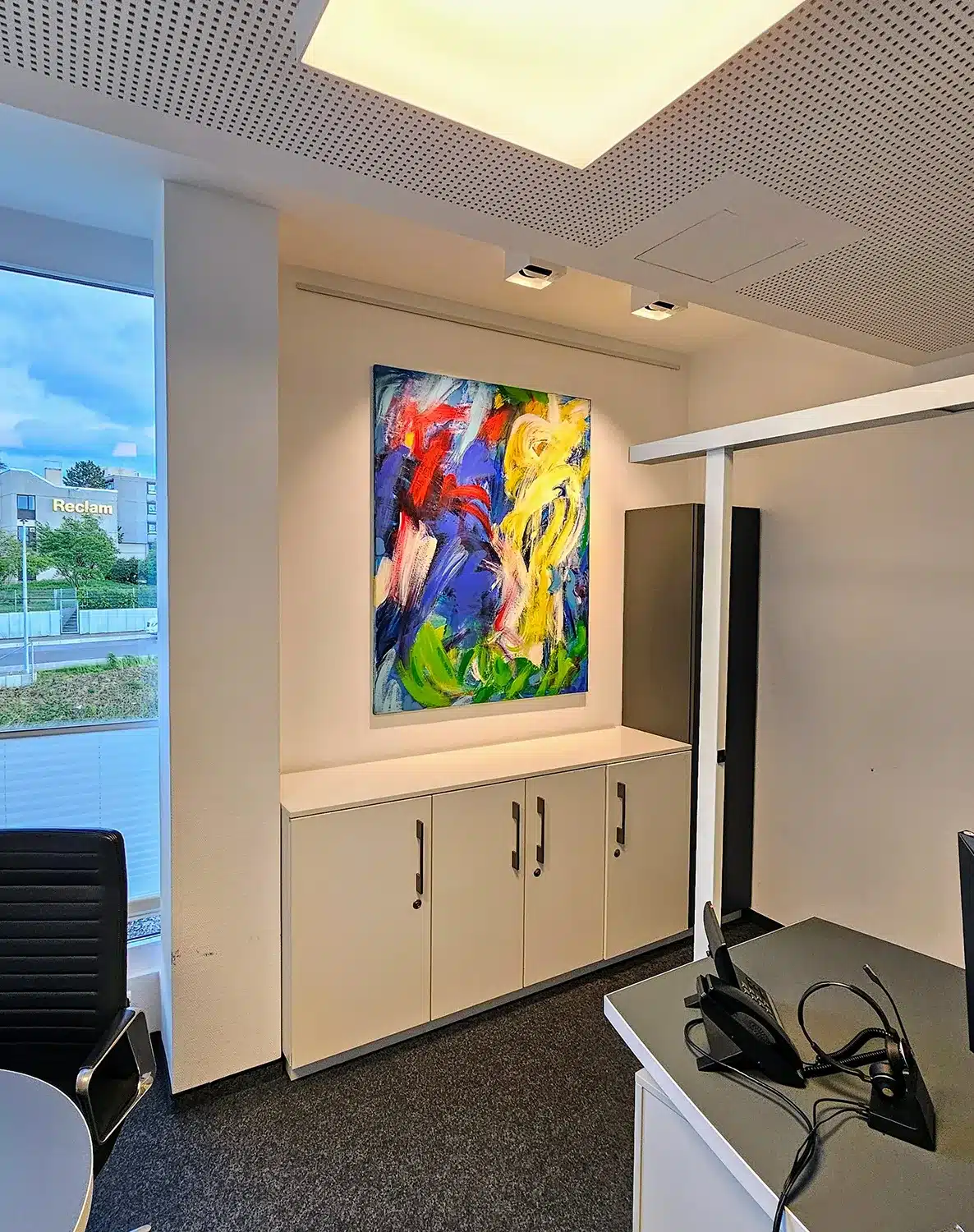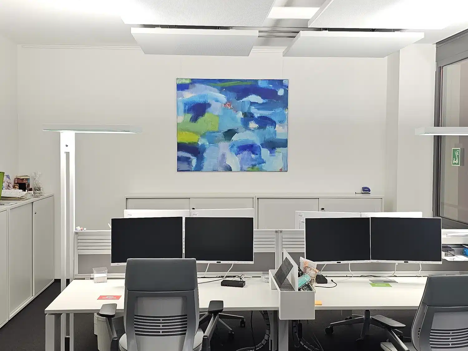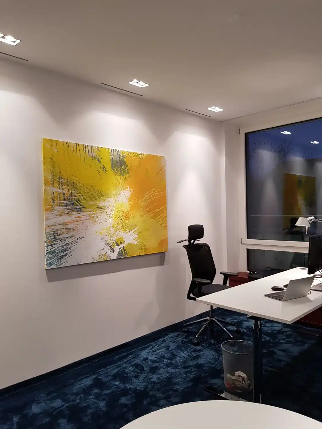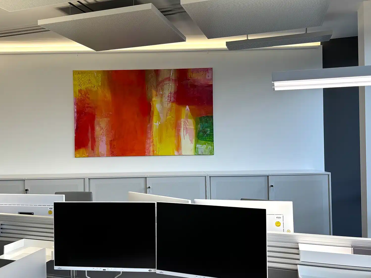 Wir bringen zeitgenössische Kunst in Unternehmen. Einfach und unkompliziert, in Büros, Gänge, Konferenzräume und Treppenhäuser. Und zwar originale Gemälde, Fotografien und Skulpturen zeitgenössischer Künstler.